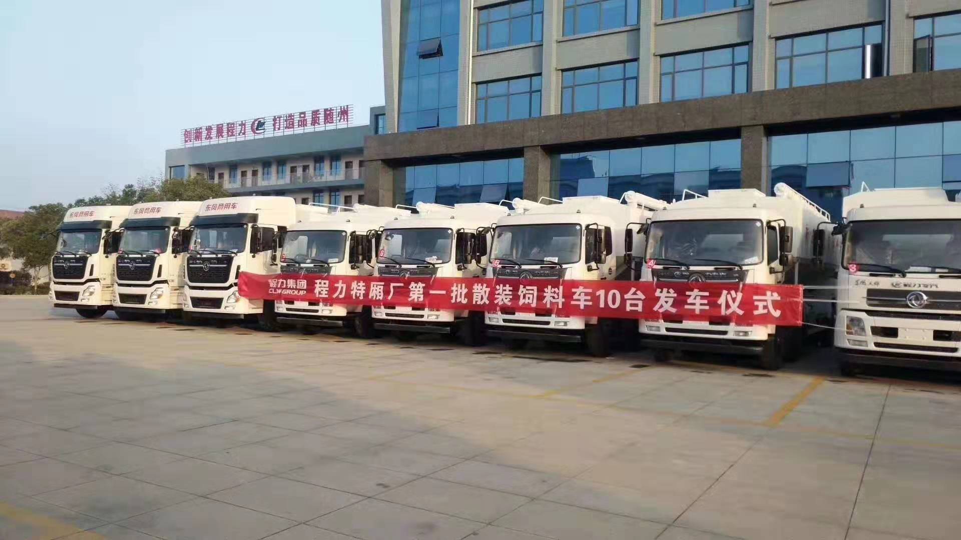 武漢軍運會期間湖北程力散裝飼料車批量發(fā)車