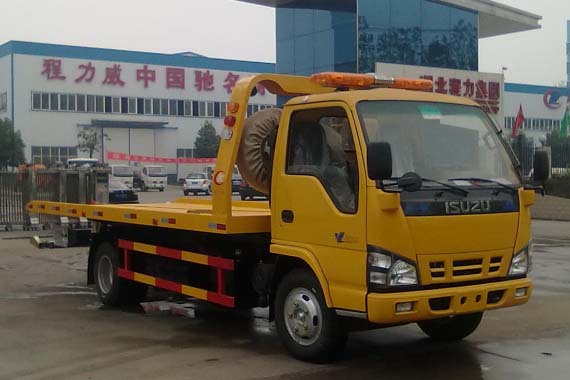 上裝配置 后平板尺寸:長5600mm 寬2300mm,最大工作行程:2680mm,平板采用一次壓制成型技術,美觀堅固。最大承載質量約為5噸,平板的傾斜角度10°,后部托臂托舉質量約為3噸,托臂伸縮行程約為1180mm,絞盤:行星齒輪減速式,牽引質量約為4噸,鋼絲繩長度約為20m。配置帶輔助輪,捆綁帶,紅黃警燈,小車輪罩,絞盤4T。