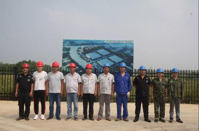 圖九:湖北程力重工消防隊(duì)員合影,左一為消防隊(duì)隊(duì)長高其榮、左三為副隊(duì)長吳繼國 |