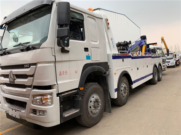 國六豪沃前四后八托吊連體重型清障車配置:國六重汽400馬力發動機,1200R20鋼絲胎,十檔箱,斷汽剎,原廠空調,ABS。 16T16D上裝或20T20D上裝,二節式六邊型吊臂,三節托臂,分體式車廂,雙側聯動操作裝置,,兩個十噸液壓卷揚,四十五米鋼絲繩,直徑18MM,配四套鋼叉,一套拖叉套,一套鋼板吊耳拖叉,一套抱胎裝置.輔助燈一套,輔助氣管總成一套,捆綁鏈條兩根;(16T16D上裝標配2個8噸卷揚)。 湖北程力國六豪沃前四后八托吊連體重型清障車程力威牌CLW5430TQZZ6型CLW5310TQZZ6清障車圖片價格: