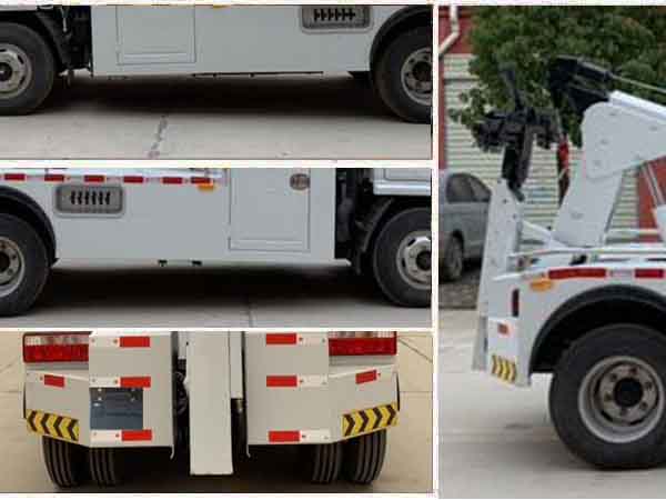 備注:托舉質量:500kg.此車為道路清障專用車輛,專用裝置為拖臂.隨底盤選裝前面罩以及前霧燈.防護材料:Q235A,左右側面采用裙板結構,離地高為380mm.后下部防護為專用裝置拖臂代替,離地高為370mm.ABS廠家及型號:襄陽東風隆誠機械有限責任公司/ABS/ASR-12V-4S/4M.此車整車長/軸距/后懸對應關系為(mm):5350/3308,4992/2950,4742/2700.選裝手動抱胎裝置.